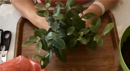 РАЗМНОЖЕНИЕ гардении: полуодревесневшими черенками, верхушечными и из средней части побега с весны до осени. Беру вермикулит либо фунт "Азалия". Черенки режу с двумя парами листьев, верхушечные - с тремя, причем верхние отщипываю, чтобы после укоренения черенок начал ветвиться. Ставлю на 1/3 в почву, немного поливаю, но не переувлажняю, иначе черенки загниют, и накрываю пакетом, в котором проделаны отверстия (для проветривания). Пакет не должен касаться листьев, иначе они покроются плесенью из-за конденсата на внутренней стороне импровизированной теплички. Корни образуются примерно через 2 недели.