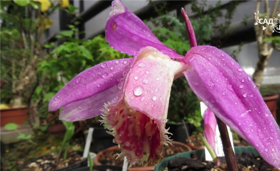 И вот тут я поняла свою ошибку: отрастающие корни не смогли проникнуть вглубь субстрата (мешали крупные кусочки коры). По этой причине бульбы стали приподниматься на корнях, а зацветающая даже опрокинулась. Пришлось вынимать ее из горшка, чтобы дополнительно измельчить кору. Разумеется, такая пересадка сократила срок цветения. Но я все же успела полюбоваться крупным нежно-розовым цветком с белой, пятнистой изнутри бахромчатой губой.