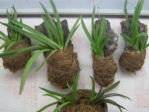 Бульбы посадила в сухой субстрат, крупную отдельно от мелких, заглубив первую наполовину (она уплощенная), а "мелочь" - на две трети. Всю зиму плейоне не поливала, немного влаги им доставалось при опрыскивании их соседей цимбидиумов. Ближе к весне мелкие бульбы изредка опрыскивала. Крупная росла быстрее и начал развиваться цветонос.