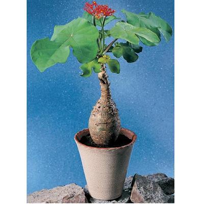 Ятрофа родом из Центральной Америки и относится к семейству молочайные. Существует около 170 видов ятроф, из которых лишь 20 - суккуленты. Это легкое в уходе комнатное растение. Млечный сок ядовит, поэтому следует соблюдать осторожность. Особой популярностью пользуются виды, которые обладают утолщенной частью стебля - поистине бутылочные "деревья" в миниатюре.