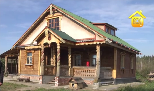 Прежде чем войти в дом, хочется надеть, как и полагается в музее, тапочки. Интерьер его по-крестьянски прост и лаконичен: ничего лишнего, просторно и в то же время уютно, стены источают легкий смолистый аромат: сруб сложен из лиственничного бруса. Размер дома -стандартный - 6x6 м, отопление дровяное. Резные детали, вся «чешуя» - из любимой осины. Она хорошо режется и долго сохраняется, приобретая со временем цвет старого серебра. Под домом - просторный и «непромокаемый» погреб, где почти в идеальных условиях хранятся заботливо уложенные и закупоренные продовольственные запасы.