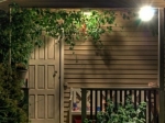 Там, где лестница касается земли, сначала хотел было поставить ролик, но потом заменил его "лыжей". Когда во время промерзания грунта земля "дышит", то поднимается на высоту до 5 см. При этом "лыжа" скользит по поверхности и крыльцо не перекашивается. Поручни лестницы также не стал жестко крепить к поручням на площадке.