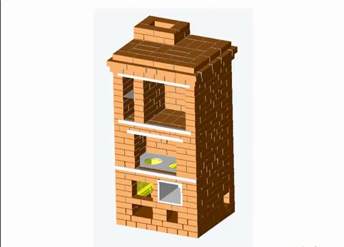 Для строительства такой печи (без учета фундамента и трубы) требуются следующие материалы: кирпич красный (витебский) М-200 - 530 шт.; кирпич шамотный Ш-8 -35 шт.; мертель - 50 кг; дверца топочная (250х 210 мм); дверца поддувальная (140x140 мм); плита чугунная двухком-форочная (410x710 мм); задвижки (250x140 мм) - 2 шт.; колосник (200х 300 мм); уголок металлический (40x40 мм) - 7,5 м; проволока железная отожженная (03 мм) -2 м; асбест (картон) - 2 кв.м; лист оцинкованного железа; колпак на трубу с посадочным местом 400х 400 мм; глина - 20 ведер; песок - 70 ведер.