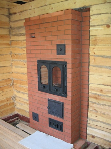 Для начала надо было определиться: какой проект дома использовать - готовый или разработанный самостоятельно, во сколько реализация этой мечты обойдется, какими силами можно осуществить строительство. Листали альбом за альбомом. Но ни один проект не удовлетворял: либо планировка не та, либо дорого. В результате, используя общие рекомендации по строительству, начали сами по своему примерному проекту возводить зимний дом. Идеи возникали и реализовывались по ходу работы. Дом получился добротный, красивый и теплый: стены из бруса, снаружи облицованы кирпичом,а внутри отделаны вагонкой. Но настоящим теплом его должна была наполнить печь.