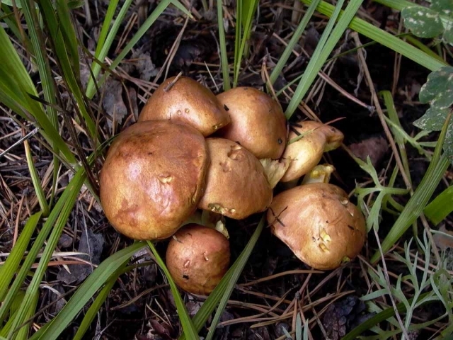 Однажды в июле дочка сказала мне, что под сосной вырос гриб. Я не придала этому особого значения, а когда пошла с газонокосилкой подровнять газон, увидела: от ствола сосны ровной строчкой блестели коричневые пуговки - маслятки размером с двухрублевую монету. Всего их было 13. Мы дали им подрасти, затем срезали и замариновали грибы - целую баночку. Открыли ее на Новый год.