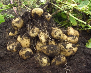 Поскольку картофель размещался в основном в холмиках, то глубоко копать при уборке не требовалось. Сами клубни были крупными, ни одного позеленевшего, в каждом гнезде - около 40 штук. По сравнению с моей старой технологией при высадке такого же количества клубней прибавка на сотку составила 200 кг.