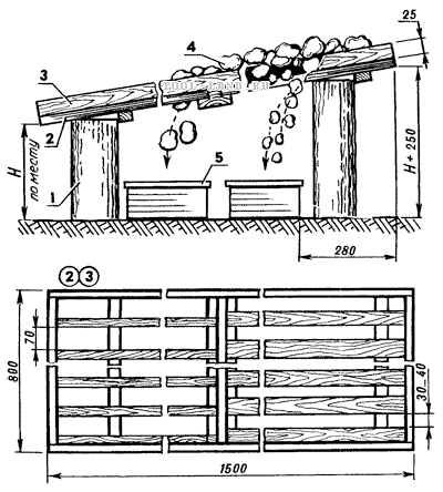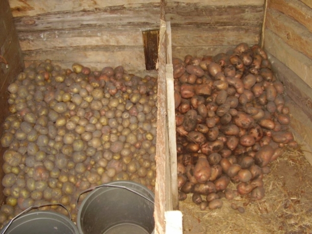 Такое устройство пригодится и для хранения обработанного картофеля, если установить короб в горизонтальном положении с помощью удерживающей рейки. Накрыв его подходящим материалом, нужно оставить щели полностью открытыми для проветривания картофеля.