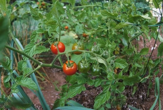 При возвратных заморозках укладываю поперек грядки через 60 см планки и накрываю грядки пленкой или другим укрывным материалом. Такая посадка освобождает меня от обустройства рассадников, позволяет высадить рассаду сразу на постоянное место. Поэтому томаты меньше травмируются, быстрее растут и развиваются. Кроме того, на отрезке стебля длиной 30 см, лежащем на земле, образуются дополнительные корни, и растение получает обильное питание.