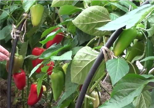 Погода стояла холодная, из-за чего с посадкой в открытый грунт пришлось задержаться. Навоз же горел, хорошо прогревая грядки в теплице, так что уже в начале мая я смог высадить в нее рассаду сладких перцев Индало и Fj Едино. После пересадки они почти не болели, быстро пошли в рост, и в конце июня я собрал первый урожай плодов. В это время без укрытия перцы в наших краях только начинают цвести.