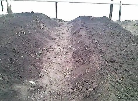 Для защиты склона от разрушения дождями и ветром разместил на нем сад. Песок из посадочных ям пустил на дорожки, междурядья залужил. Сделал из веток, скошенной травы, навоза, бытовых отходов и дерна два вала высотой 30 см вдоль главной аллеи и по три таких же поперек участка, чтобы задерживалась влага. Деревья у меня высажены по схеме 5x6 м, поэтому в междурядьях сада светло, в них я доращиваю рассаду в ящиках и сею овощную зелень, при поливе и подкормке которых питательные вещества и влага, просочившиеся вглубь, достаются и деревьям.