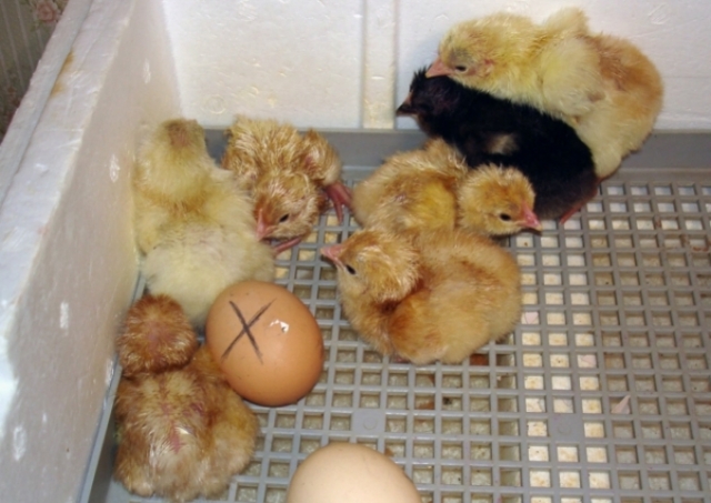 Началась птичья эпопея с инкубатора на 30 куриных яиц, который мы сделали с отцом. Это был теплоизоляционный ящик с подогревом, яйца в нем надо было поворачивать вручную. Первый опыт, правда, оказался неудачным. Во второй стадии инкубирования яйца сами начинают отдавать тепло, а мы этого не учли. Температура в ящике поднялась выше 40°, и из всех заложенных яиц вывелось только два цыпленка.