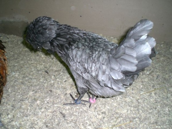 У петуха и курицы одинаковая окраска. Цвет пера равномерный, нежный, светло-голубой.