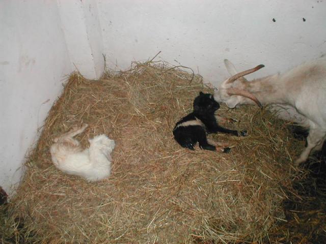 После окончания окота следим, как отходит послед. Сама же коза в это время облизывает новорожденных. Такая возможность должна быть предоставлена ей обязательно. Облизывая своих детенышей, она поглощает большое количество биологически активных веществ. Это, в свою очередь, стимулирует отхождение последа. Мы никогда не мешаем роженицам поедать их собственный послед. Считаем, что это благоприятно воздействует на козу, помогает ей восстановиться, хорошо сказывается на последующем раздаивании. Ведь в дикой природе все животные поедают свой послед. Когда-то мы позволяли поедать послед и нашей корове, если она проявляла такое желание. Никакой потери жвачки или какого-то иного отклонения не наблюдали. Отрицательные последствия могут быть лишь тогда, когда в стойле плохие санитарные условия. В этом случае животное, поедая послед, инфицированный патогенной микрофлорой, может получить тяжелое отравление. Но сам послед, повторяю, здесь ни при чем.
