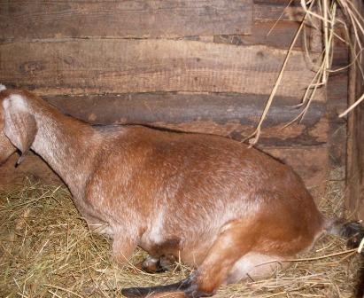 К глубоко сукозным маткам внимание особое. За несколько дней до предполагаемого окота наблюдаем за поведением будущей мамы. Как только появятся первые признаки приближающегося окота (набухание вымени), берем козочку под тщательную опеку. Если через 8-20 часов обнаруживаем две симметричные ямочки по обе стороны у корня хвоста - это сигнал к окоту. Значит, начали расходиться кости таза. Один раз козе еще можно дать погулять недалеко от дома. Я заметил, что коза в это время на выпасе старается побыстрее наесться.