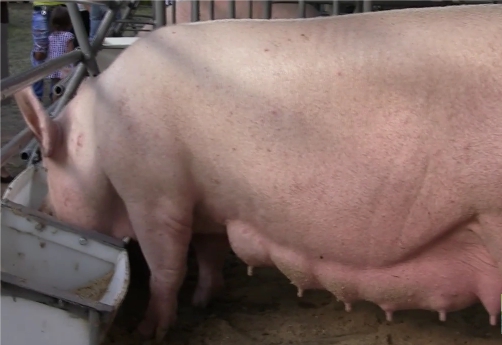 О приближении родов у свиньи вы узнаете по таким признакам: вымя набухает и наполняется молоком, приобретает темно-красный оттенок, становятся виднее его доли. При надавливании из набрякших сосков по капле выделяется прозрачная жидкость, а за несколько часов до опороса она становится беловатой и брызжет тонкой струйкой.