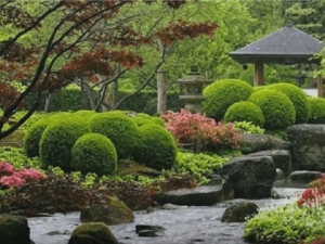 Чтобы создать если не классический сад в японском стиле, то хотя бы его иллюзию, нужно строго подойти к подбору растений. Как правило, такие сады очень сдержанны по колориту. Причем основу составляют именно нецветущие растения, большей частью хвойные. Цветущие растения используют ограниченно, и они должны быть близкими по цветовой гамме либо вообще монохромными. В одном саду следует стремиться к единообразию, создавая цветовые пятна за счет небольшого числа культур.