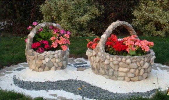 С правой стороны дороги к дому в линию выстроились деревянные контейнеры (высотой 20 см, шириной 50 см), покрашенные белой краской.