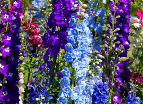 Цветки в соцветии распускаются снизу вверх и не вянут 15-20 дней. Семена обычно завязываются хорошо и довольно быстро вызревают. Но материнские признаки сеянцы не наследуют, обычно происходит расщепление. Поэтому самые интересные шпорники размножают весной делением кустов или зелеными черенками длиной 10-15 см. Кстати, молодые побеги дельфиниума выдерживают весенние возвратные заморозки до минус 5°.