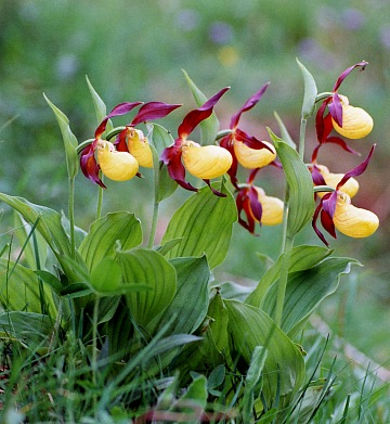 Башмачки - довольно стабильные растения, форма и окраска их цветков внутри вида не отличается разнообразием, но мутанты встречаются и среди них. Мне посчастливилось найти только один - башмачок настоящий, потерявший коричневый пигмент. Две небольшие куртинки располагались в метре друг от друга. Не исключено, что это очень старый экземпляр, распавшийся надвое. У его цветка лимонно-желтая губа, остальные чок в природе, - откопайте только несколько стеблей от старого экземпляра с большим количеством побегов. Не трогайте одиночные молодые растения. Так вы сохраните генофонд дикой популяции.