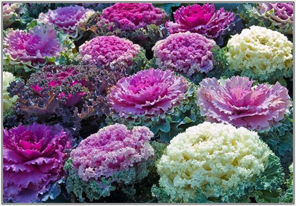 Чем можно украсить сад поздней осенью? Дольше всех держатся "цветы" капусты - ее яркие декоративные розетки листьев устойчивы даже к небольшим морозцам.