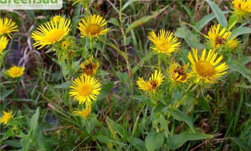 Из крупных травянистых растений есть маралий корень (или левзея), девясил, ревень, таволга (или лабазник), валериана и борщевик. Правда, левзею мне пришлось возобновлять, на пятый год жизни большой куст вымерз. Девясил же хорошо выдерживает наши морозные зимы, он посажен на границе света и тени, цветет через год, но семена не вызревают.