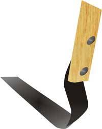 Чтобы было удобно работать, длину черенка каждый садовод должен подобрать под свой рост. Угол крепления насадки-"петли" к ручке около 45°. Но и тут, впрочем, каждый волен выбирать сам, кому как удобно. Заточить лезвие советую с двух сторон, и делать это можно под любым углом и с любой стороны.