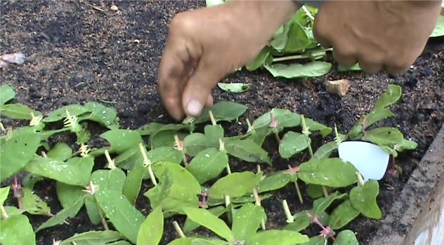 Через месяц-полтора хорошо укоренившиеся и давшие достаточный прирост черенки вместе со стаканчиками высаживаю в грунт в притененном месте, поливаю. Устанавливаю «капельницы» - пластиковые бутылки, проколотые иголкой. Капельки воды должны падать в стаканчики. Спустя 15-20 дней стаканчики аккуратно вынимаю.