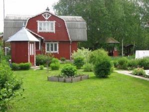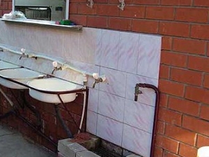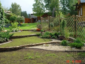 Еще одно полезное и симпатичное сооружение - уличный дачный умывальник - я разглядела на участке у другого соседа. Дом у него из бруса, но обложен кирпичом, поэтому умывальник в кирпиче выглядит на участке вполне уместным и составляет с домом единый ансамбль.