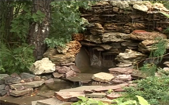 А вот уютный уголок с полуокруглой скамейкой в тени берез - в самый раз. "Пол" вымостили розовой округлой плиткой. Вход на площадку - через мостик над двумя мини-прудиками (из готовых пластиковых форм). Только пока нам не удалось как следует задекорировать растениями берега водоемов. Сейчас их украшают глиняные горшки с цветами, камни. Совсем недавно высадили туда ирисы, хосты, лилейники и баданы. Когда они разрастутся, пруды будут выглядеть естественно. Вечером этот уголок сада подсвечивают невысокие фонари на солнечных батареях.