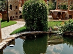 Рядом с соседским хозблоком высадил пчело-опыляемые огурцы среднего срока созревания для открытого грунта и декоративные тыквы с небольшими желтыми плодами грушевидной и бутылочной формы с гладкой, сетчатой или бородавчатой корой. Глухая стена, даже деревянная, угнетающе действует на нервы. Поэтому рядом с фундаментальной кирпичной оградой мы с другом разместили несколько растений тыквы с крупными, тяжелыми плодами. Подобрали сорта Миндальная 35 (плоды у нее с коричневыми полосами на оранжево-желтом фоне), Мозолеевская 49 (с яркими оранжевыми плодами), Премьера (со сплюснутыми, темно-зелеными).