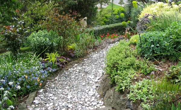 Это прогулочная дорожка по дикому саду. А идея ее создания, как, впрочем, и реализация принадлежат Борису Васильевичу. Гулять по хорошо утрамбованной каменной крошке удобно и приятно. Главная прелесть этой тропы заключена не только в ее окраске, но и в плавных изгибах. И тут сразу чувствуется рука художника: каждый поворот дорожки настолько естественно вписан в окружающие посадки, будто другого "русла" для нее и быть не может.
